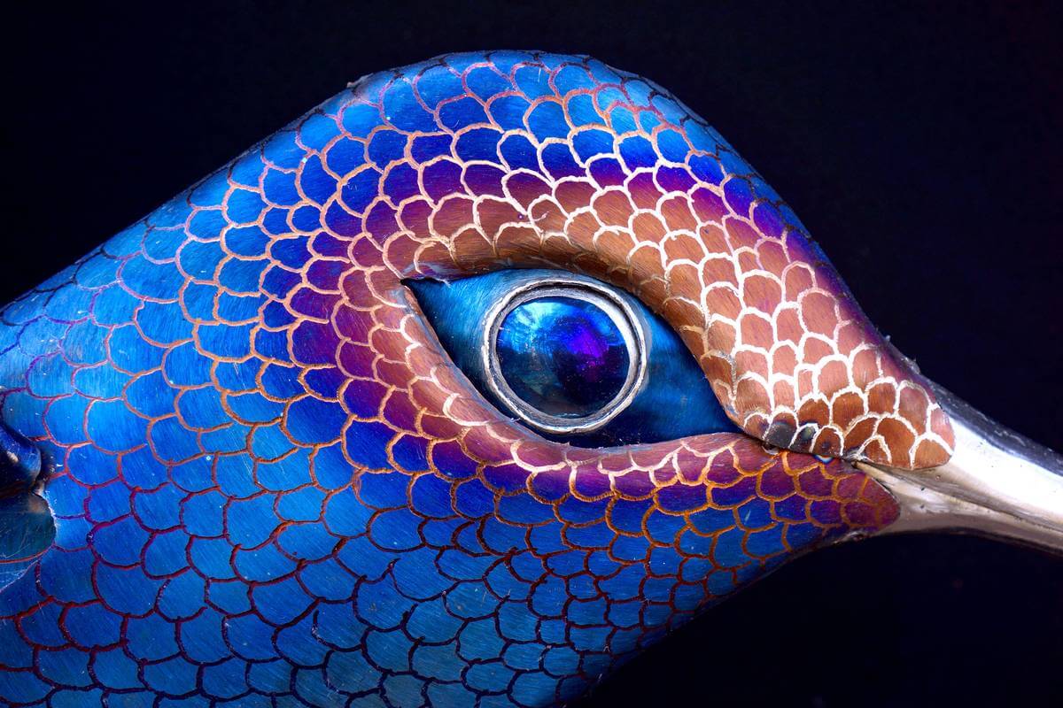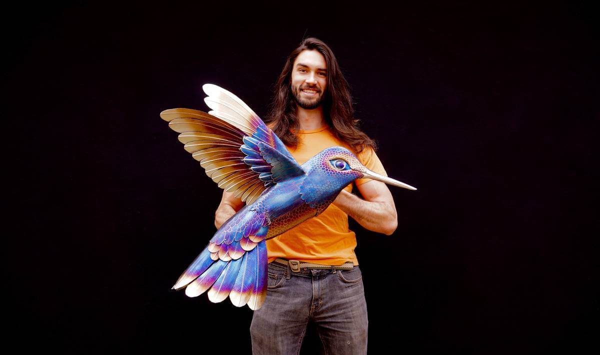 This wall hanging hummingbird sculpture is wall hanging, made entirely of stainless steel, colored using only heat patinas and is completely safe to be kept outdoors!