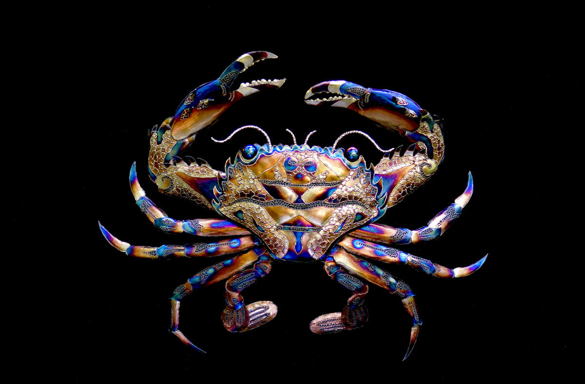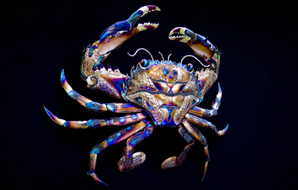 It was commissioned for a gate in Hawaii. I received a photo from the client of the crab they wanted but they had no idea what type of crab it was. In order to do this incredible creature justice, I needed more reference photos and facts.