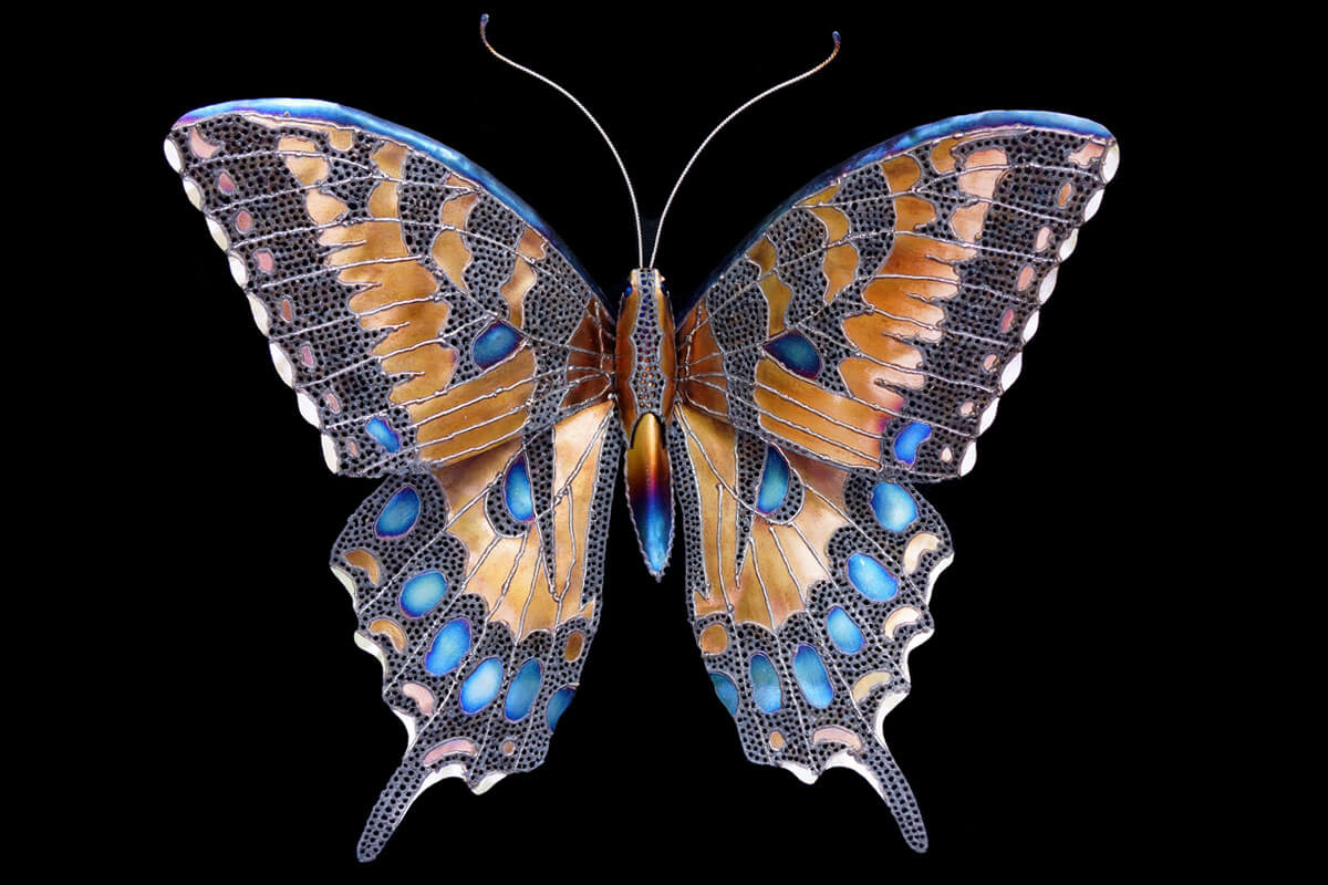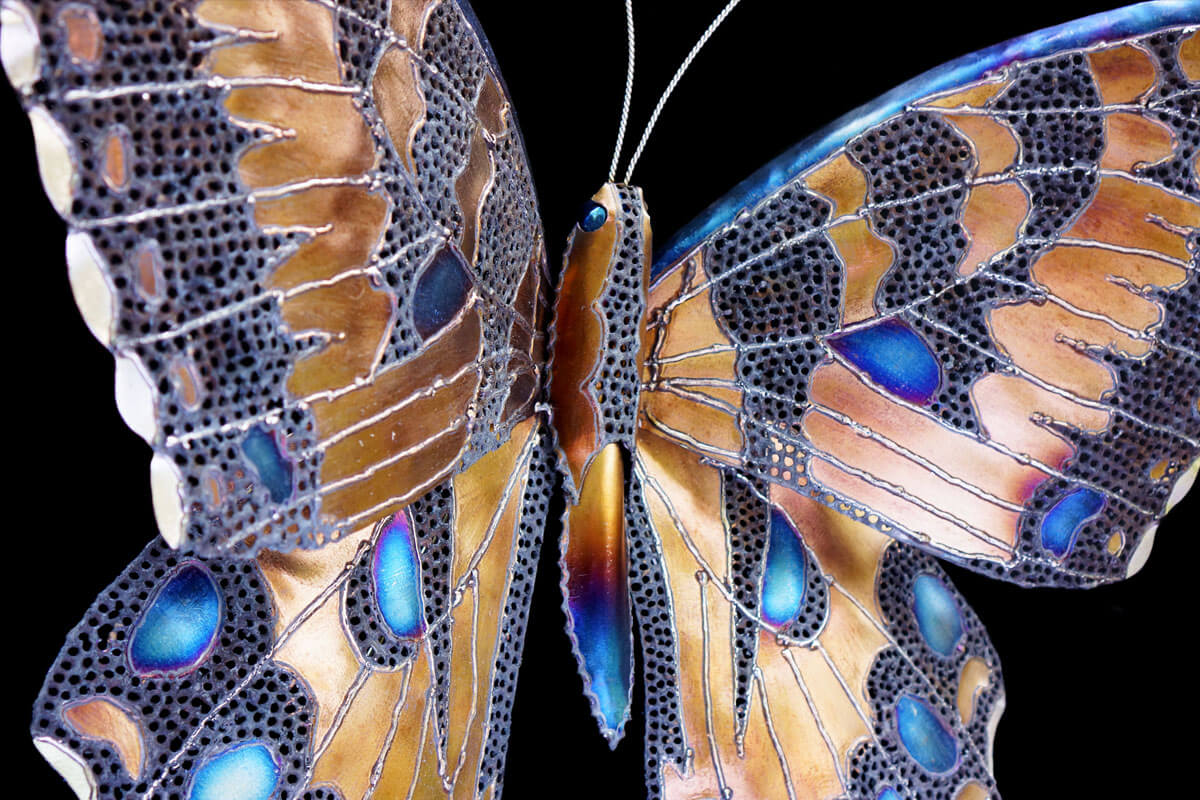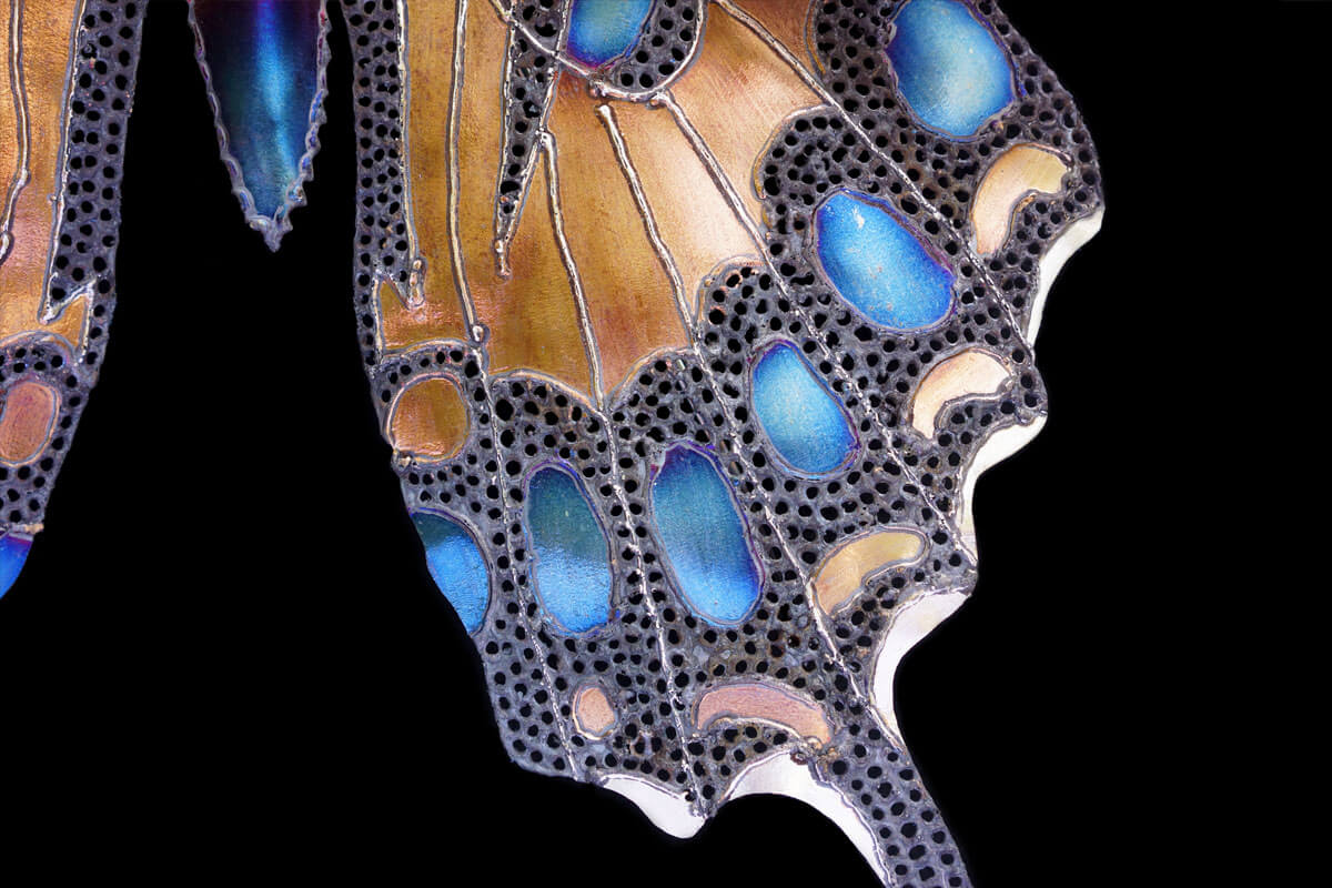 With this butterfly I was focused on the detailed veins that run through the wings and excited to create more saturated colorful wings. I couldn’t achieve the bright yellow that these butterflies have in real life but I am happy with how the coppery gold turned out. And it was fun to try and make large sheets of metal appear weightless.