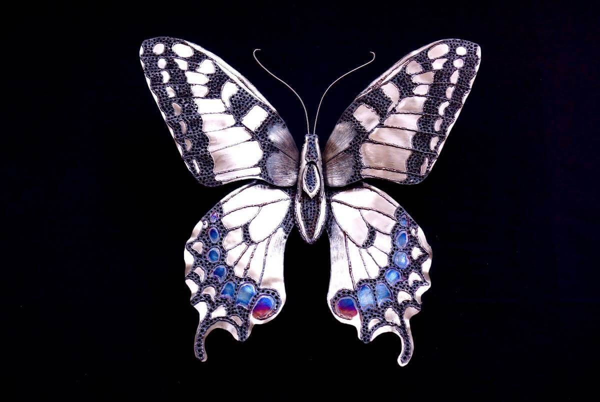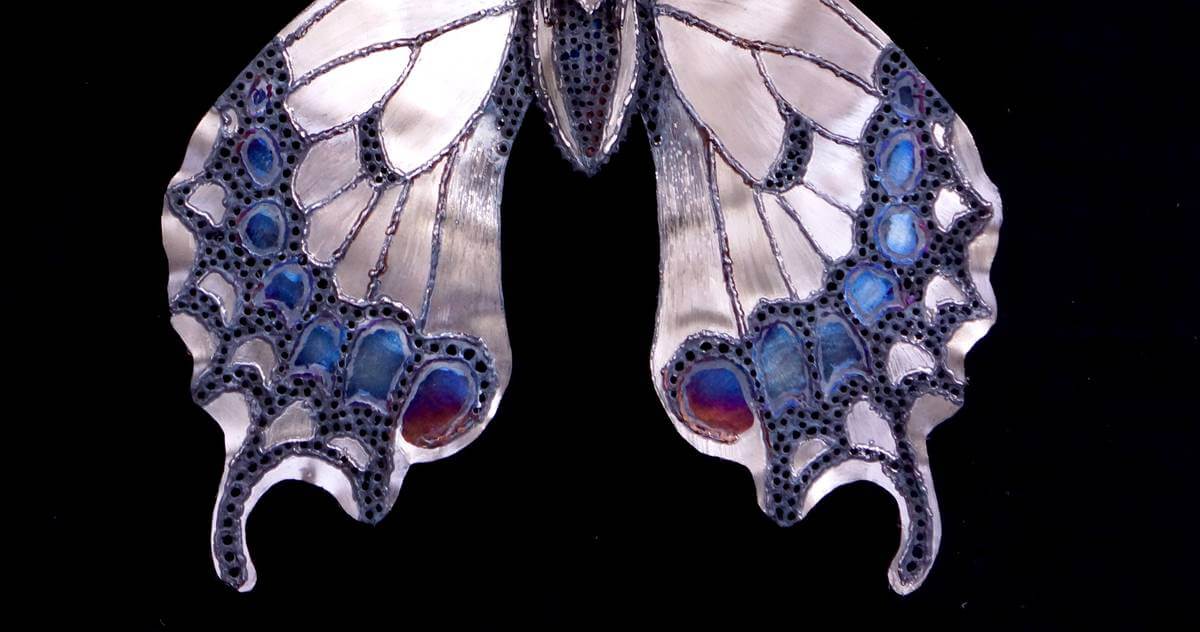 With this particular butterfly I was wanting to show the incredible natural beauty of uncolored unaltered stainless steel. And i feel it also allows the colored parts of the wings to really pop and have a different presence than if the whole part was colored. It was a fun challenge to try and make large sheets of metal feel weightless and alive.