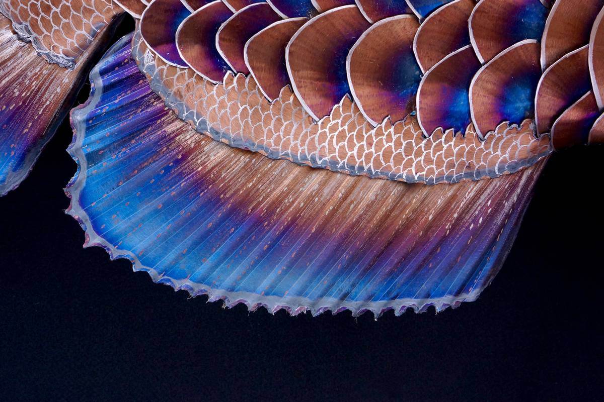I love repetition and have wanted to make a fish where i created every scale individually. This was a perfect candidate as the scales are large and beautifully patterned with the lateral line of scales adding a gorgeous swooping detail. This fish is made up of 125 individual pieces including 105 individual scales. I also tried a new eye design for this fish with added depth so one can actually look into the eye. Overall I really love this fish!