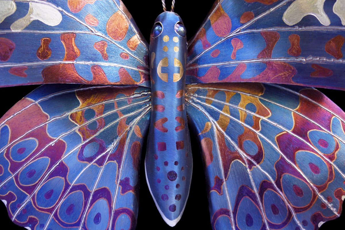 Butterflies have always been one of my favorite excuses to get lost in detail, and the Blue Cracker might be one of the most intricate yet. I created this stainless steel butterfly sculpture for a dear friend’s garden, designing the hanger so it could perch two ways — mounted on a wall indoors or slid onto a garden stake to live outside among the flowers.