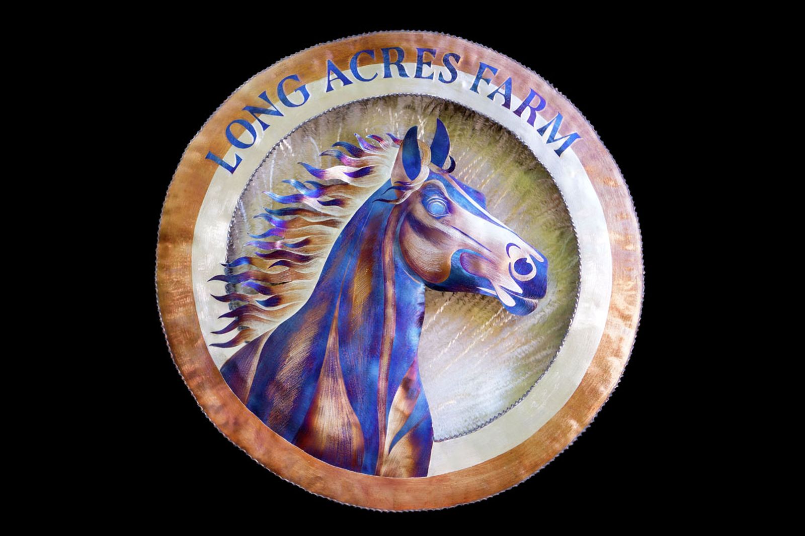 This metal horse sign is wall hanging, made entirely of stainless steel, colored using only heat patinas, and is safe to be kept outdoors!