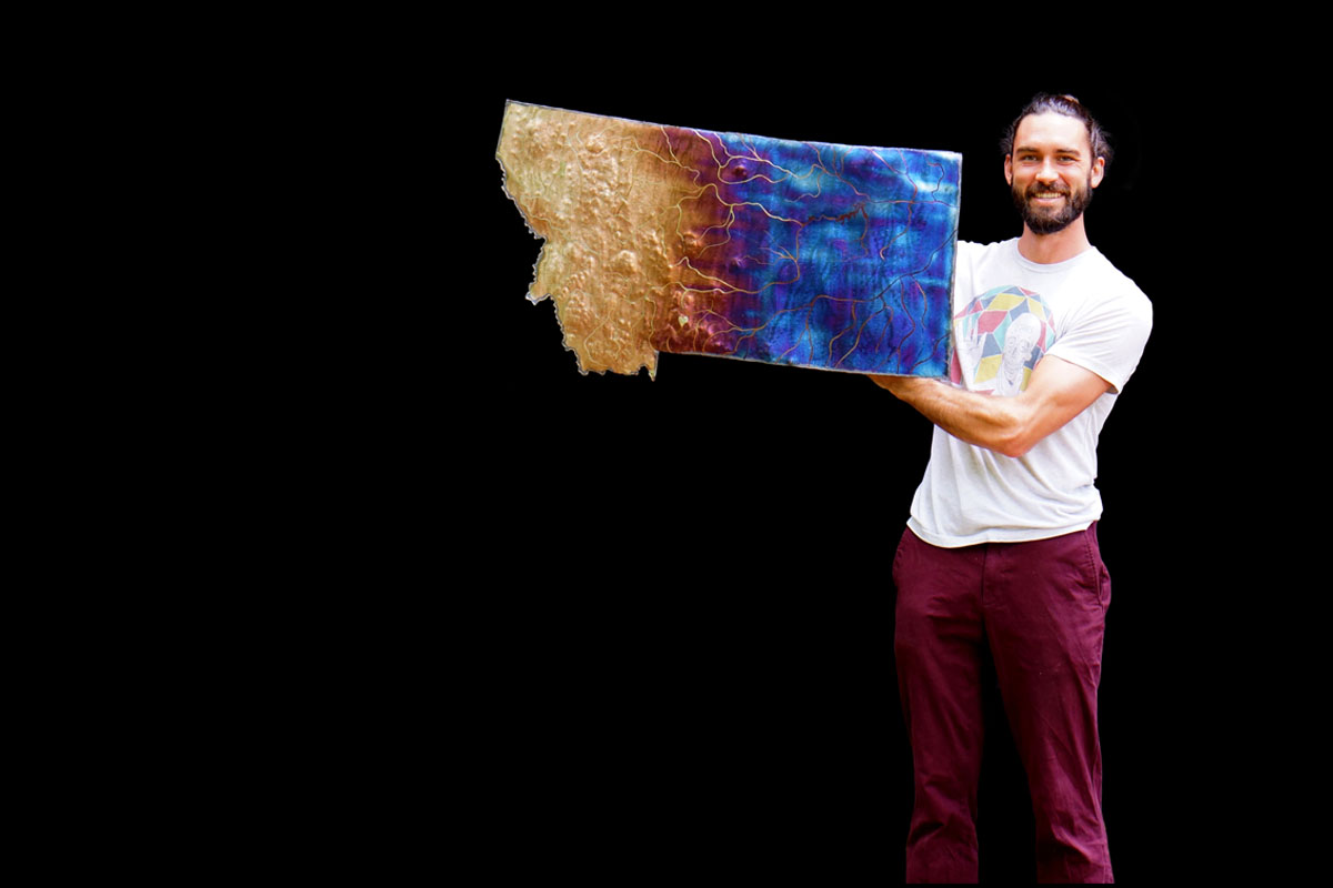 This metal Montana map sculpture is wall hanging, made entirely of stainless steel, colored using only heat patinas and is safe to be kept outdoors!