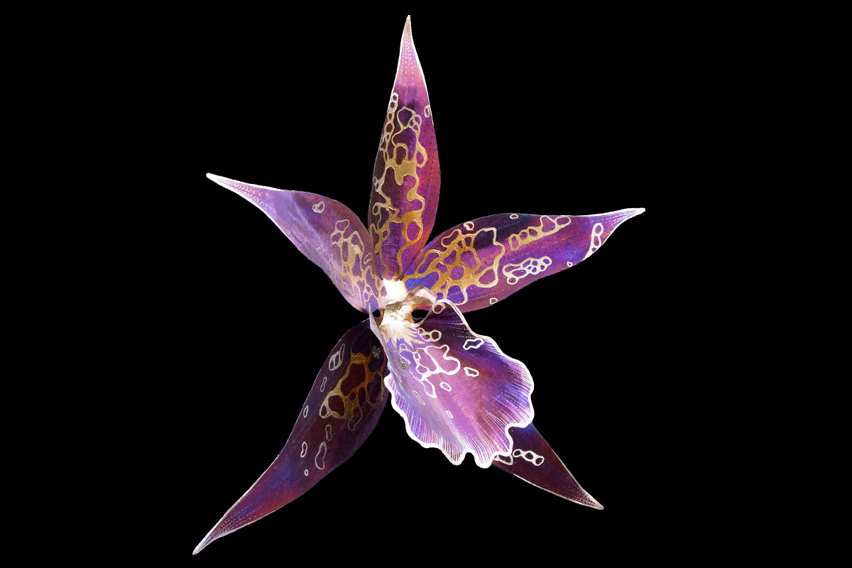 She looked at a few different types and the Pacific Matriarch orchid also known as the Beallara Patricia McCully orchid stood out to her and I was excited at the thought of making one. So I got to work! I started out by coloring it purple then grinding in all those squiggly little details and then came back and colored it the cooler golden colors before finally bringing out the silver details, cold shaping and welding it together.