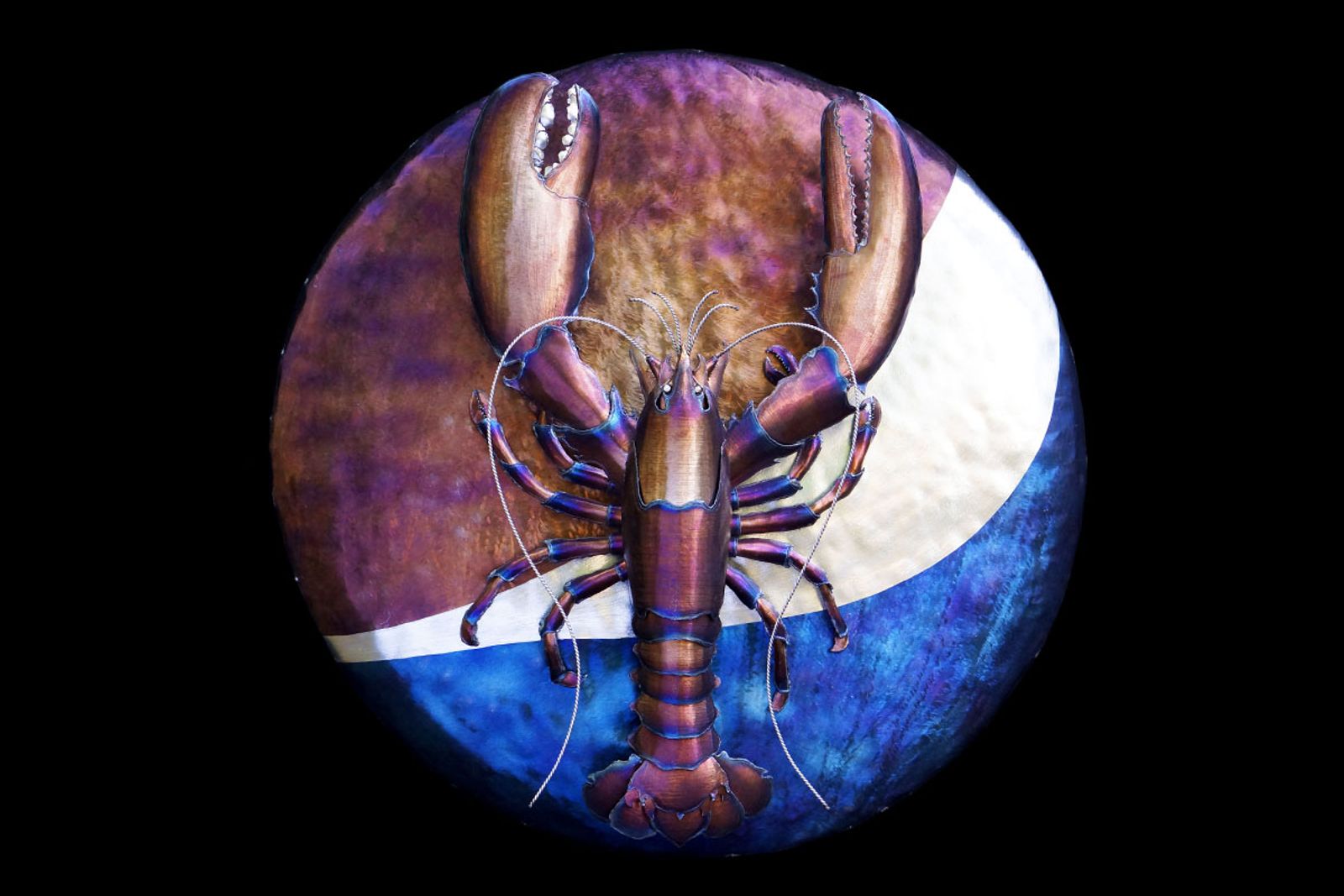 Someone from Pepsi reached out to me and requested a bespoke lobster sculpture to be made as a gift to commemorate Pepsi's ongoing relationship with Red Lobster. They asked if I could create a large Pepsi logo and weld a red lobster to it and I said as long as they were ok with a golden reddish purple color instead of a bright red then I certainly could!